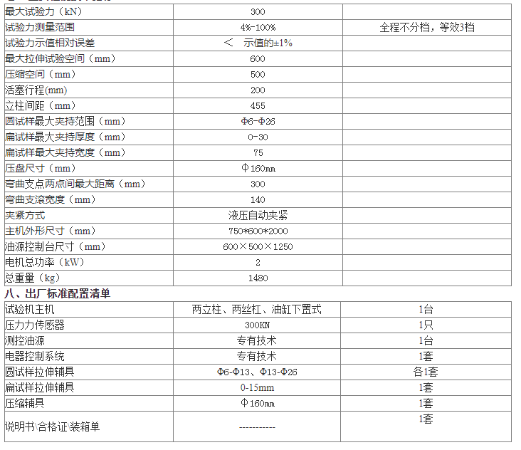 主機(jī)為兩立柱、兩絲杠、油缸下置式,拉伸空間位于主機(jī)的上方,壓縮、彎曲試驗(yàn)空間位于主機(jī)下橫梁和工作臺(tái)之間。測(cè)力儀表采用高清液晶顯示屏,實(shí)驗(yàn)數(shù)據(jù)方便直觀。