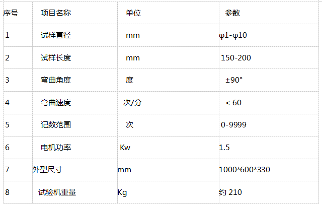 JWJ-10電動金屬線材反復(fù)彎曲試驗(yàn)機(jī)的主要參數(shù)符合GB/T238-2013《金屬材料線材反復(fù)彎曲試驗(yàn)方法》中有關(guān)規(guī)定,廣泛應(yīng)用于鋼絲廠、預(yù)應(yīng)力鋼絲廠、建工建材、公路交通、廠礦企業(yè)、科研院所、質(zhì)檢單位檢驗(yàn)鋼絲、鋼筋等金屬線材的彎曲性能。